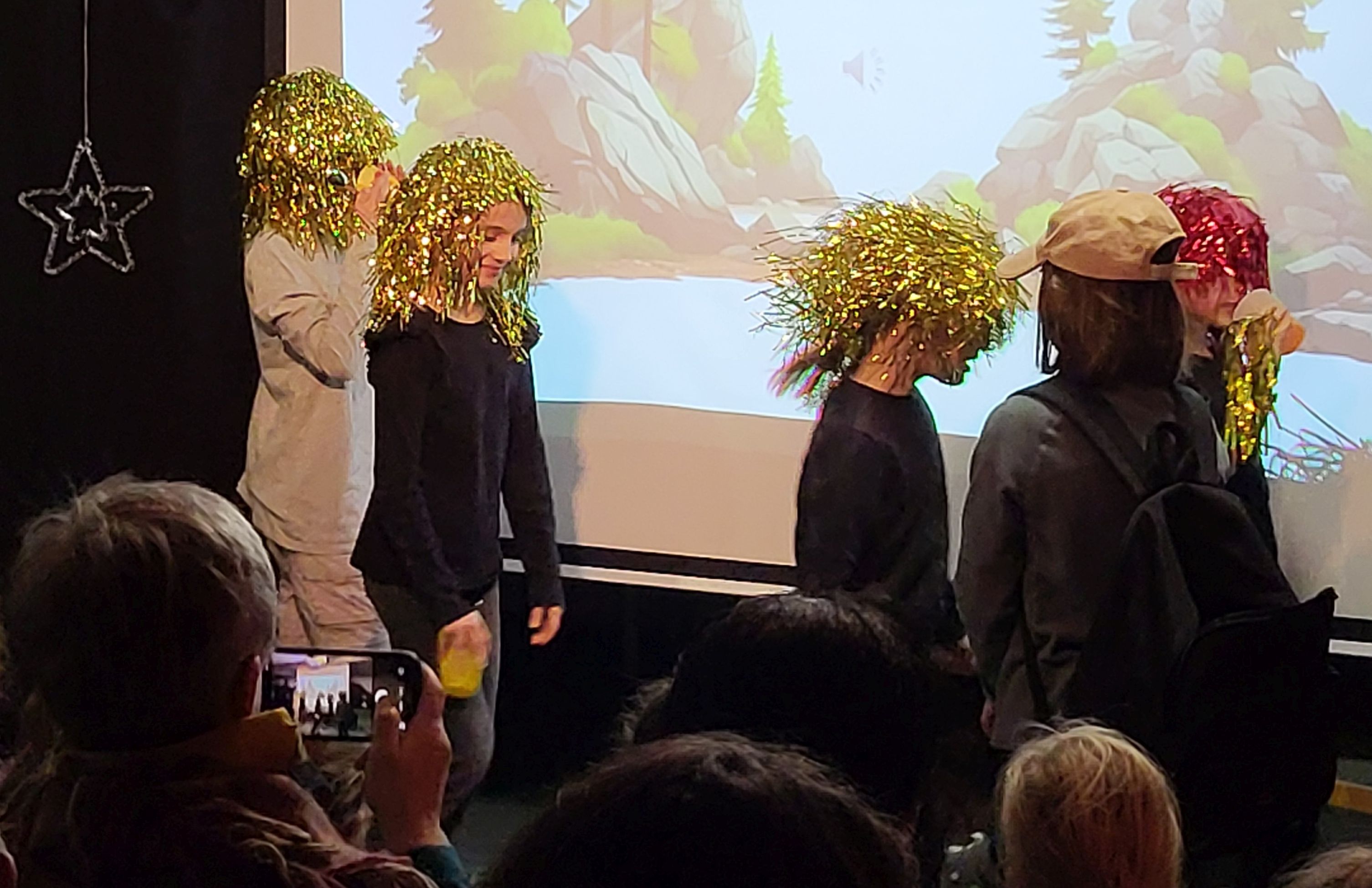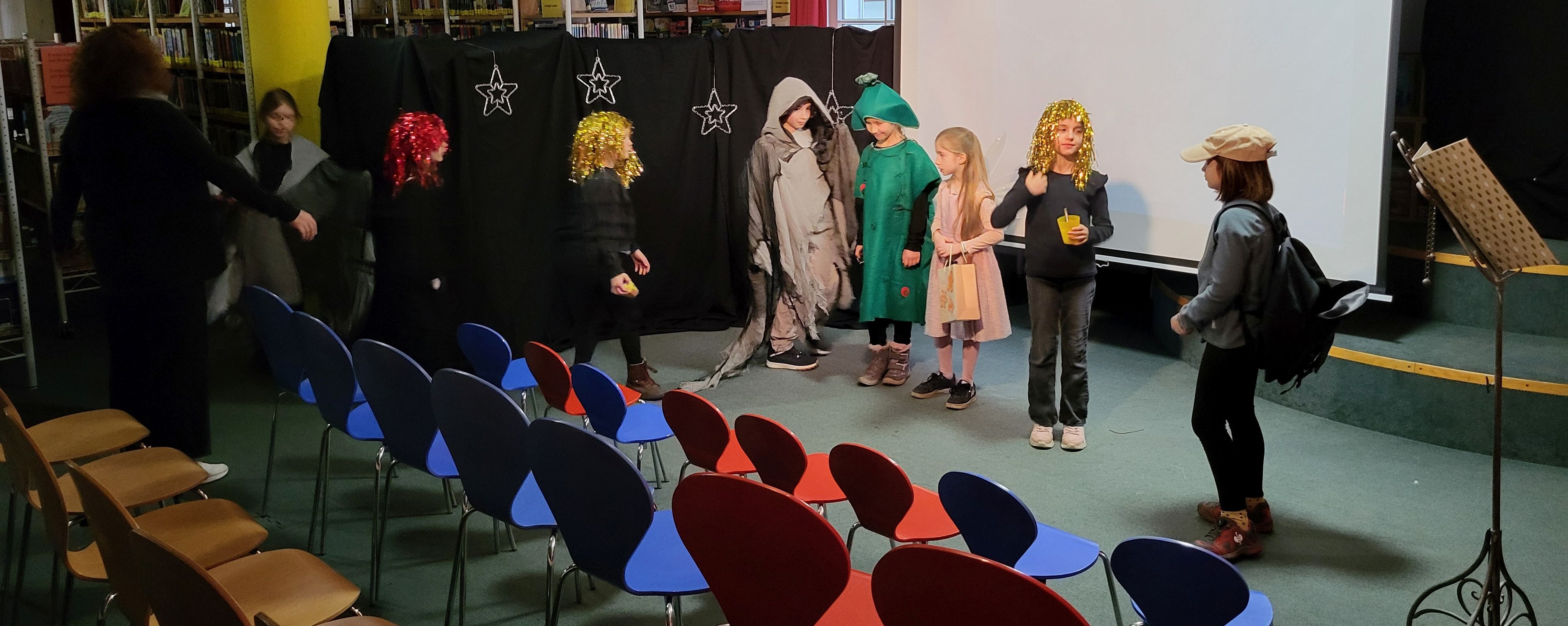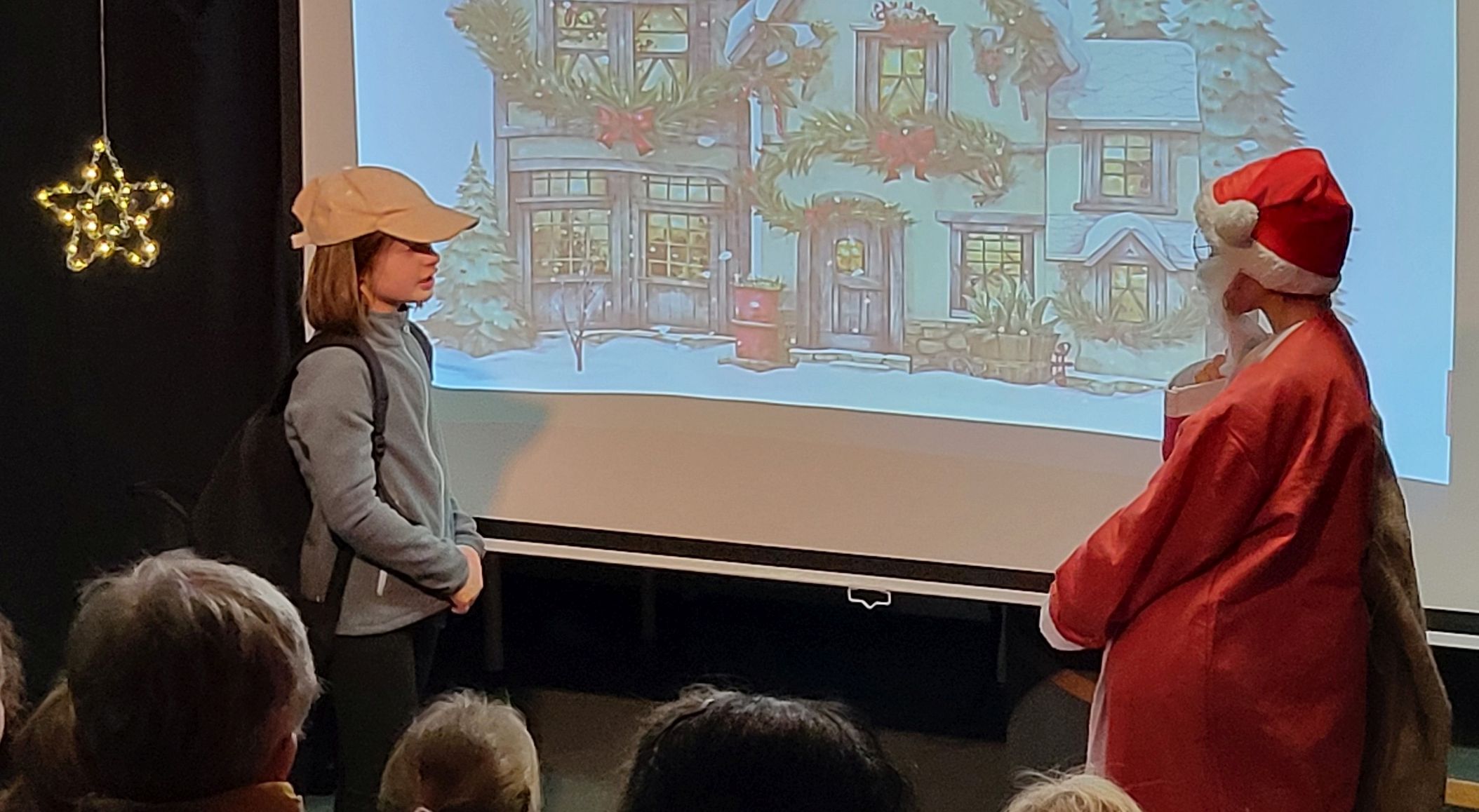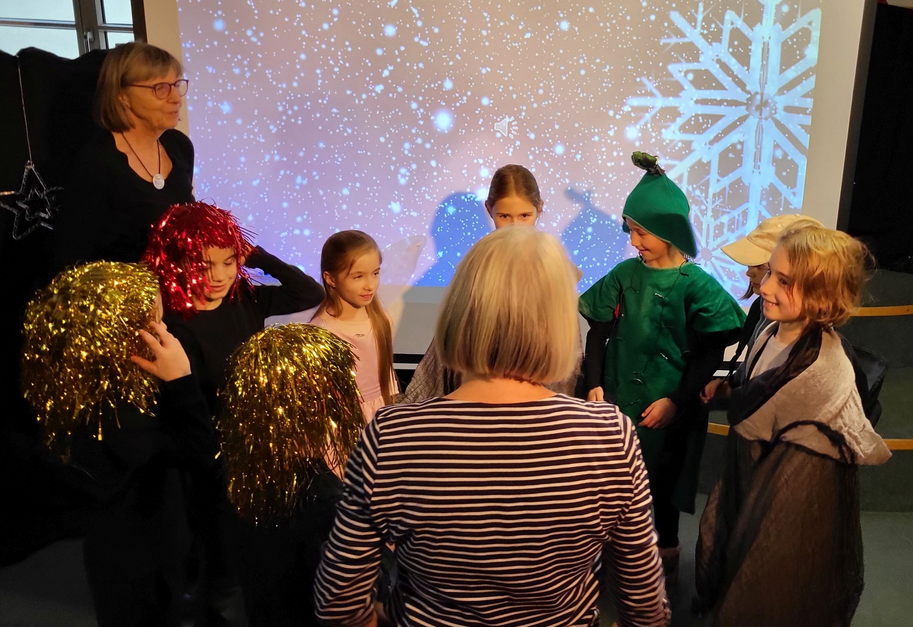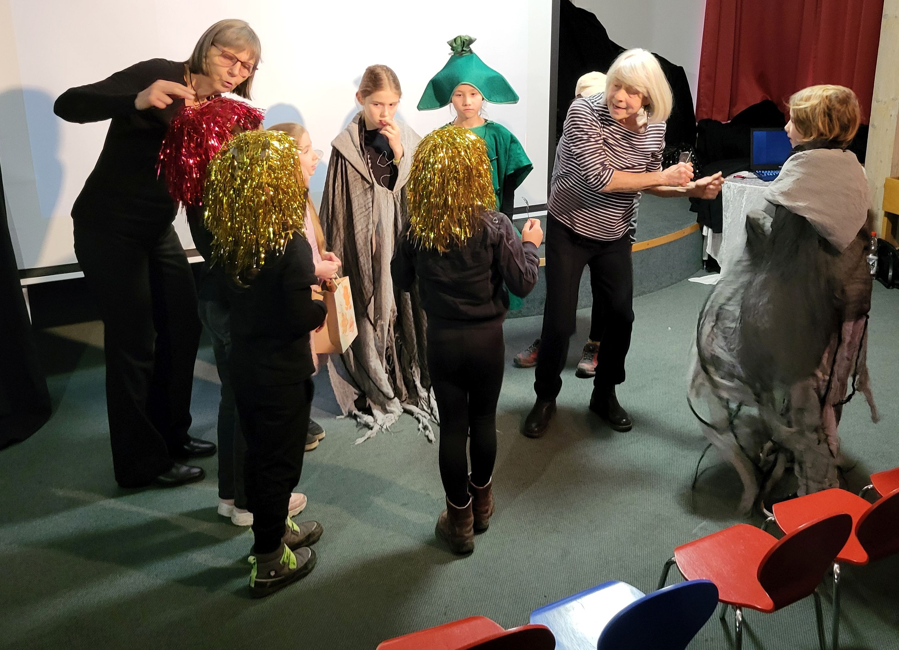 | Am 13. Dezember 2025 war es dann endlich soweit. Die Aufführung in der Stadtbücherei konnte stattfinden. Der Zuschauerraum war prall gefüllt, die Zuschauer gespannt und die Schauspieler leicht nervös. |