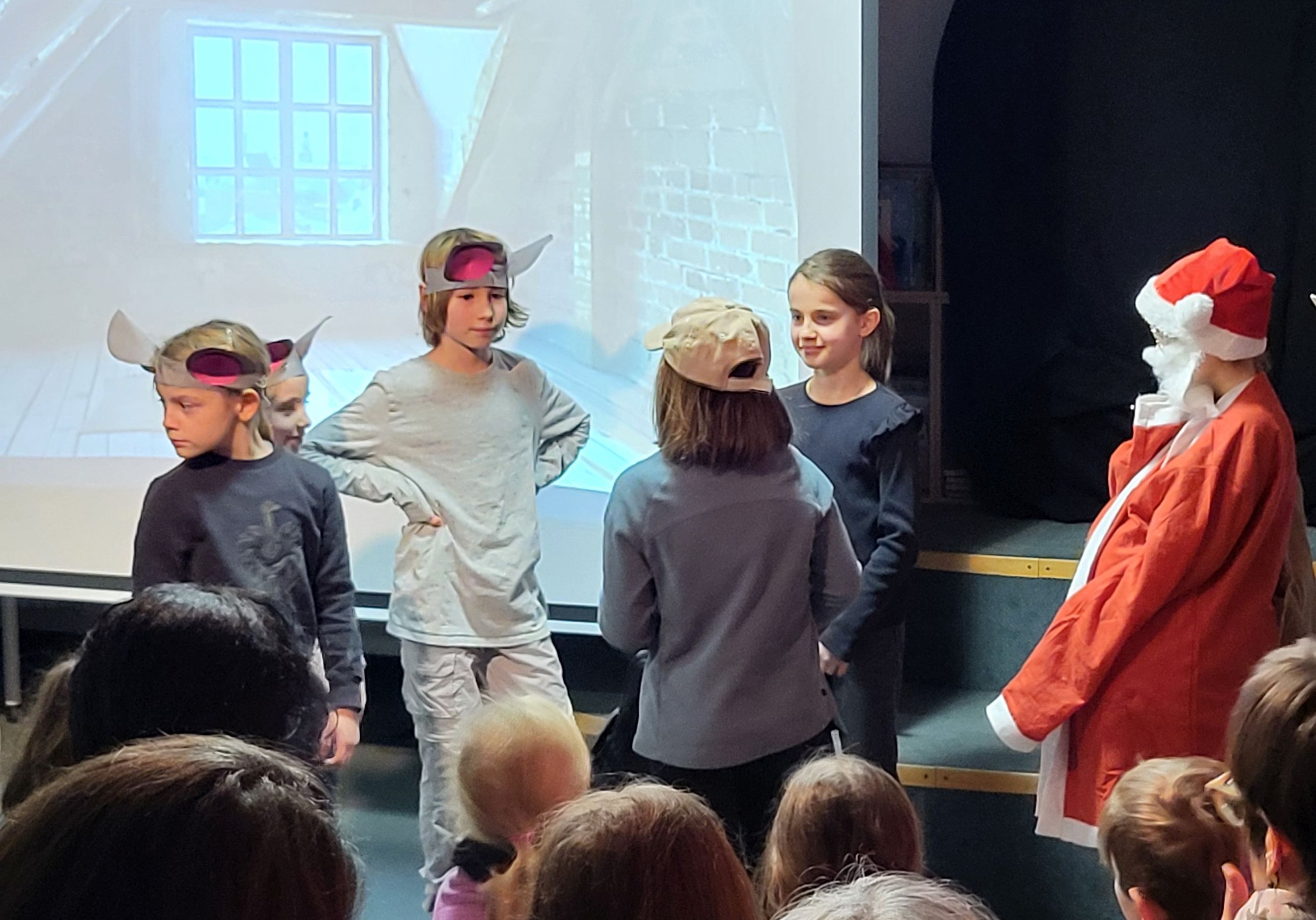 Als Grundlage diente das Buch "Der geheimnisvolle Adventskalender" von Astrid Nagel. Bei einer kleinen Autorenlesung lernten die Kinder Nico kennen, der leider dem Weihnachtsfest absolut nichts abgewinnen kann. |