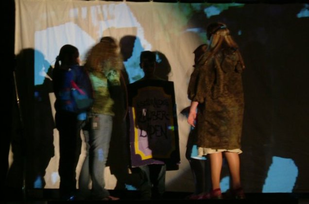 Der Schwarze Jäger belauscht Nico, Lisa und Johanna in der Schädelhöhle